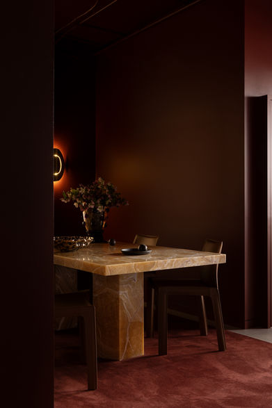 This ethos is woven throughout the clinic, manifested in a rich tapestry of earthy red tones and luxurious textures, including sumptuous carpets, Rosso Levanto marble, and velvet. The design encapsulates the essence of a well-lived life, artfully blending layers of symbolism with a nod to the elegance of the old world.