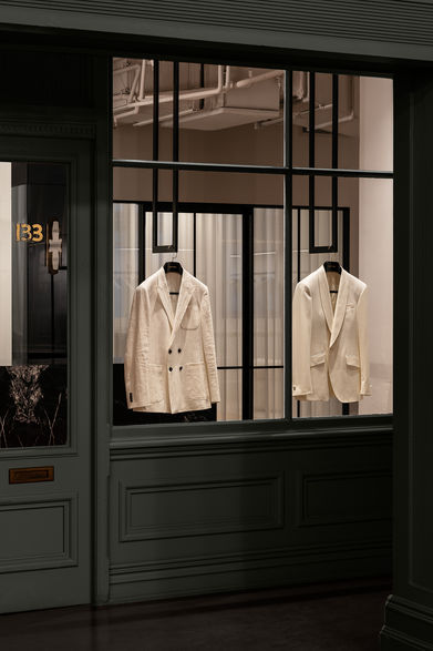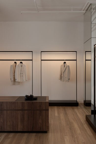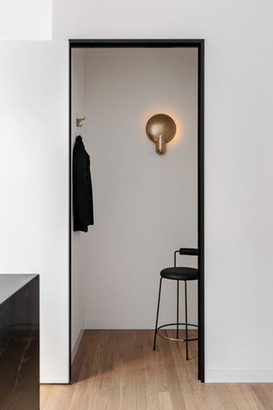 Planning resolved an irregular tenancy through a concept derived from a nautilus shell. A circular vestibule formed the core, with rooms radiating from it to create intuitive circulation and privacy. Existing columns were absorbed into the composition rather than concealed, turning constraints into architectural features.